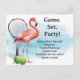 Invite your guests in style with this vibrant tennis-themed invitation featuring a chic pink flamingo holding a tennis racket and ball. Designed in a bright, modern watercolor style, this tropical scene blends sporty energy with a fun Florida-inspired vibe.