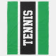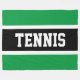 Dieses lustige Sportdesign zeichnet sich durch klassisch starke, fette Großbuchstaben in einem markierten, breiten schwarzen Streifen mit weißen Pinstreifen auf einem hellen kelly grünen Hintergrund aus. "TENNIS" hat sich vor und nach in der Mitte ausgesprochen. Machen Sie es sich selber: Die Farben und Texte in diesem Design können personalisiert sein.