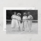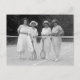 Vier Frauen im Netz in Tennisoutfits. Grosses altes Frauenmode-Foto der 1920er Jahre.