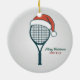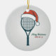Tennis Paddle with Santa Hat Custom Christmas Ceramic Ornament