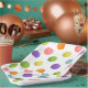 Kreative Tennis-Party- oder Teamevent-Teller mit bunten festlichen Tennisballmustern.