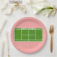 Funny Tennis Party oder Event Teller mit Tennisdesign und "Servieren Sie sich" Linie auf rosa Hintergrund.
