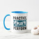 Dieses moderne Design verbindet Eleganz und Stärke und inszeniert zwei Silhouetten von Tennisspielern in einer sauberen Zusammensetzung. Mit einem stilisierten blauen Hintergrund, der einen Tennisplatz repräsentiert, ist die Botschaft 'Praxis, Spiel, Perform' klar: Anstrengung führt zum Erfolg. Ideal für Tennisfans, die versuchen, ihre Spielliebe auf Kleidung oder Zubehör zu zeigen.