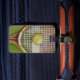 Tennis-Racket mit Ball-Lay vor Gericht Gepäckanhänger