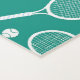 Weiße Tennisschläger. Aktives Lebensmotiv. Tennisausrüstung auf grünem Hintergrund.