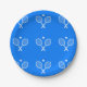 Weiße Tennisschläger. Aktives Lebensmotiv. Tennisausrüstung auf blauem Hintergrund. Für Tennisliebhaber.