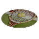 Tennis-Schläger mit dem Ball, der auf Gericht legt Schneidebrett