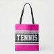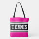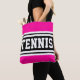 Dieses sportliche, sportliche Design zeichnet sich durch feinen TENNIS-Text in einem farblich hervorgehobenen schwarz-weißen Rennstreifen gegen leuchtend rosa Außenstreifen aus. Der Text in diesem Design kann personalisiert sein.