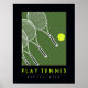 Eine nette Idee für einen Tennisspieler mit einem grafischen Design aus Schlägern und einem gelben Ball mit den Worten: Tennis spielen und sich gut fühlen...
