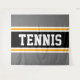 Dieses sportliche, sportliche Design zeichnet sich durch feinen TENNIS-Text in einem farbig hervorgehobenen breiten schwarzen Streifen mit doppelweißen und gelben Rennstreifen gegen graue äußere Streifen aus. Der Text in diesem Design kann personalisiert sein.