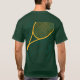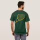 Ein gelber Schläger mit dem Wort Tennis, der überall in der Tee-Briefmarke wiederholt wird