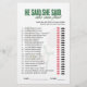 Make your celebration extra fun with this Tennis Theme He Said She Said bridal shower game card designed as a full-page paper game sheet. Guests will guess whether the bride or groom said each statement first by circling their answer. Featuring a playful tennis-inspired theme, this game is perfect for tennis lovers, sporty couples, country club bridal showers, engagement parties, and wedding showers. The clean, easy-to-read layout makes it simple to play, while the coordinating tennis pattern on the back adds a stylish, professional finish. Ideal as a bridal shower game card, engagement party game sheet, or wedding event activity.