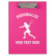 Die Damen Tennis Trainer Zubehör Custom rosa Zwischenablage. Geben Sie Ihren eigenen Namen, Teamnamen oder Clubnamen ein. Coole Geschenkidee für Schultrainer, Mama, Kinderliga, Mädchenteam etc. Silhouette für Tennisspieler mit sportlicher Typografie. Neon rosa oder benutzerdefinierte Farbe Hintergrund Clip-Board. Doppelter Druck.