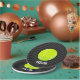Tennisball auf schwarz-dunkelgrauen Streifen Pappteller