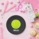 Coole, farbenfrohe Mini-Tennisball, Tennistrainer, Spieler, gelbe grüne Kugel, Sportdesign auf schwarz und dunkelgrau, graue diagonale Streifen Muster. Perfektes Geschenk für Baby, Kleinkind, Kinder, Kinder, Jugendliche oder Erwachsene! Das Design wird personalisiert, indem ein Kindername oder ein eigener Text mit sportlich-sportlich-sportlich-weißem Schriftart hinzugefügt wird. Besuchen Sie unseren Shop, Birthday Party House, für mehr große personalisierbare Jungen und Mädchen Produkte!