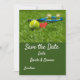 Tennisball ist auf grünem Gras mit Liebe Hochzeit Save the Date Einladung