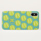 Dieses niedliche Tennis-iPhone-Gehäuse zeichnet sich durch ein wackeliges Muster aus Tennisbällen auf einem aquamarinen Hintergrund aus - passen Sie ihr Monogramm auf einem koordinierenden aquamarinen Kreisanhänger an - von katz_d_zynes | Mehr Girls-Tennis-Geschenkideen finden Sie hier >>>> https://www.zazzle.com/store/katz_d_zynes/products?qs=tennis&cg=196213760493791764