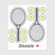 Aufkleber mit dunkelgrauen Tennisschlägern und grünen Tennisbällen.