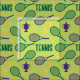 Lila und grüne Tennisschläger und Tennisbälle auf frischem grünem Hintergrund. Klassisches Muster für Tennisspieler und Fans. Sie können die Größe des Musters anpassen.