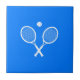 Tennisschläger mit Ball auf blauem Hintergrund Fliese