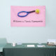 Tennisschläger mit Kugel in rosa Begrüßung Banner