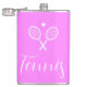 Weiße Tennisschläger. Aktives Lebensmotiv. Magenta oder tiefrosa Hintergrund. Geschenk für Tennisliebhaber.