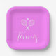 Weiße Tennisschläger. Aktives Lebensmotiv. Magenta oder tiefrosa Hintergrund. Geschenk für Tennisliebhaber.