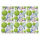 Eine große Geschenktasche, die in Tennisbällen und -racken Gemustert ist