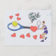 Mit dieser lebendigen Postkarte mit einem Tennisspieler, der einen blauen Schläger hält, können Sie ein Lächeln genießen. Ideal, um Gruß, Einladungen oder einfach nur ein freundliches Hallo an die Tennisfreunde zu senden. Egal ob Sie einen Sieg feiern, Freunde für ein Spiel einladen oder einfach nur Ihre Liebe für das Spiel teilen, diese Postkarte erfasst die Energie und Spannung des Tennis in einer stilvollen und auffälligen Art und Weise.