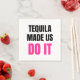 Add a bold, playful touch to your celebration with this “Tequila Made Us Do It” bachelorette party napkin. Designed for fun-loving bride tribes, this statement piece brings humor and personality to your party setup—perfect for cocktail bars, tequila shots, and unforgettable girls’ nights. The clean, modern typography with a pop of pink makes it both eye-catching and photo-ready, tying seamlessly into your bachelorette theme. Ideal for bridal showers, girls’ trips, and wild weekend celebrations, these napkins are the perfect mix of chic and cheeky.