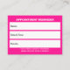 Erinnern Sie Ihre Kunden oder Kunden daran, Sie zu treffen. Geben Sie ihnen den Termin und die Zeit, um Sie zu treffen. Neben der Erinnerung an Ihre Kunden oder Kunden durch diese Terminkarte, schaffen Sie Markenbewusstsein, werben Sie für Ihr Unternehmen oder fördern Sie Ihren Markennamen. Visitenkarte, die Sie anpassen können, um Ihren Firmennamen und mit Leerzeichen, um den Namen, das Datum, die Zeit und den Termin oder den Zweck des Besuchs zu schreiben. Die Farbe Rosa und Schriftart Weiß. Um diese Terminkarte anzupassen, laden Sie Ihr Firmenlogo hoch, geben Sie Ihren Firmennamen, Ihre Adresse, Telefonnummer, E-Mail und Website oder Social Media-Seite ein. Bitte Karo nach dem Hochladen von Logos und Schriftzeichen auf der Vorder- und Rückseite. Wenn Ihnen das Aussehen gefällt, können Sie jetzt Ihre Bestellung aufgeben. Wenn Sie das Logo und die Texte ändern und verschieben müssen, um auf diese Terminkarte oder auf andere Formen, Stile und Größen, die Sie wählen, passen, ändern Sie bitte das Design-Tool. Sie können auch andere Änderungen vornehmen, je nach dem Erscheinungsbild, das Sie im Designwerkzeug bevorzugen, z. B. die Änderung der Hintergrundfarbe, der Schriftart und des Schriftartes.