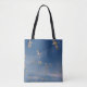 Das Originalfoto von ZoeSPEAK auf diesem Tote Bag fängt eine Herde von Seeschwalben ein, die vom Strand abfliegen und den Ozean überqueren. Die weißen Vögel, im Licht der späten Nachmittagssonne, heben sich vom tiefblauen Himmel ab. Die Seeschwalben haben schwarze Federn auf ihren Köpfen und Flügelkanten, und gegabelte Schwänze wie die Schwänze der Schwalben.