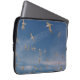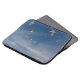 Das Originalfoto von ZoeSPEAK auf diesem 13" Laptop-Sieb fängt eine Schar von Seeschwalben ein, die vom Strand abfliegen und den Ozean überqueren. Die weißen Vögel, im Licht der späten Nachmittagssonne, heben sich vom tiefblauen Himmel ab. Die Seeschwalben haben schwarze Federn auf ihren Köpfen und Flügelkanten, und gegabelte Schwänze wie die Schwänze von Schwalben.