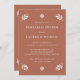 Dieses elegante Abendessen mit Probe besticht durch ein mexikanisches Interieur auf der Vorder- und Rückseite. Ideal für eine südwestliche oder mexikanische Hochzeit. Sehen Sie sich die anderen Artikel der Terra Cotta Mexican Wedding Suite für eine perfekt abgestimmte Einladungskollektion an.
