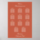 Terracotta 11 Table Wedding Seating Chart Poster, bitte personalisieren Sie die Namen des Paares und die Namen der Gäste zusammen mit einem anderen Text, den Sie vielleicht personalisieren möchten. Ein stilvolles Plakat mit elegantem weißem Text auf einem schönen Terrakotta-Hintergrund.