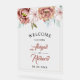 Herzlich willkommen bei Ihren Gästen mit einem fesselnden, transparenten Hochzeit im Herbst-Schild. Das Design ist mit einer floralen Aquarellanordnung in reichen Terrakotta-Braun und Blätter ausgestattet, die die Spitze des Schildes schmücken. Das Wort "WELCOME" wird elegant in einem stilvollen Schriftart präsentiert, während die Namen der Neuvermählten in einem fließenden Drehbuch den unteren Teil abbilden. Dieses bezaubernde Schild ist ideal, um dem Hochzeitsort eine Touch von Eleganz und Wärme hinzuzufügen.