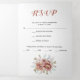 Terracotta Aquarell Blume Blumenkohl Foto Hochzeit Tri-Falten Einladung mit RSVP-Karte. Ein wunderschönes Hochzeitsdesign mit Aquarellfarben-Blume in Terracotta-Braun und Blätter. Die Namen sind in Skripttypografie. Schneiden Sie das letzte Fenster aus und verwenden Sie es als RSVP-Karte. Auf der Rückseite des Gehäuses befindet sich ein Foto des Ehepaares.
