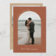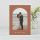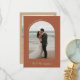 Schönes und elegantes Foto danke Ihnen Karte zu senden, um Ihre Hochzeitsgäste in Terrakotta und Bräune. Doppelseitige Hochzeitskarte mit zwei Fotos, eins in einem bogenförmigen Rahmen mit LIEBE & DANKS in einer Kurve geschrieben. Terracotta Hochzeit Dankeschön Karte mit Ihren Namen in einem modernen tan Bürste Skript. Graues und weißes Foto bedanken sich bei den Karten für die neuen Weds. Fügen Sie Ihre eigene persönliche Danksagung Nachricht auf der Rückseite des doppelseitigen Fotos Dankeschön Karte.