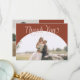 Elegante und minimale Hochzeit dank Fotokarte mit einem großen Terrakotta Bogen Rahmen mit einem Wirblen Serif-Schriftart, der "danke" an der Spitze sagt. Sie können ein zweites Bild auf der Rückseite mit einer Nachricht hinzufügen.