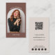 Ein wunderschönes Terracotta Bogen-Design mit 1 Ihrer eigenen Fotos und Ihrem QR Code. Diese minimalistische Terracotta und beige Visitenkarte ist ideal für jeden. Eine einfache und berufliche Art, Ihr Unternehmen vorzustellen. In der Gestaltung dieser Visitenkarte enthaltene Platzhalter für Social-Media-Icons für Sie, um durch die angebotenen Social-Media-Icons zu ersetzen. Personalisieren Sie Ihre Daten, um Ihre eigene, einzigartige schwarz-weiße Visitenkarte zu erstellen. Eine perfekte Visitenkarte für Fotografie.