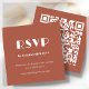 Sie suchen die perfekte Hochzeitskarte? Unsere kompakte, anpassbare, moderne Hochzeitskarte RSVP mit atemberaubender Typografie im Deko-Stil, die Ihre Gäste beeindrucken wird. Mit einem angesagten, orangefarbenen Terracotta-Hintergrund können Sie ganz einfach Ihren eigenen Text einfügen, um ihn zu einem einzigartigen Erlebnis zu machen. Auf der anderen Seite erstellen Sie einen brandneuen QR-Code, der direkt auf Ihre Hochzeitswebsite verweist, um den Zugang zu erleichtern und den Komfort zu erhöhen. Gehen Sie die "personalize" Option, fügen Sie Ihre Hochzeitswebsite-URL zu dem Bereich, die zur Verfügung gestellt, und ein QR-Code wird auf dem Design nur für Sie generieren. Bestellen Sie jetzt und lass die RSVPs beginnen sich einzurollen!
