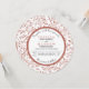 Terracotta Blätter Muster rund Herbst oder Herbst Hochzeitseinladung. Im Mittelpunkt dieser lieblichen Hochzeitseinladung steht ein Blumenmuster aus Blätter in Terracotta-Tonfarbe und ein weißer Rahmen mit geschmolzener Terrakotta-Kontur, der Ihre Formulierung enthält.