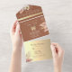 Elegante, moderne, botanische, boho terracotta Ganze-in-One Hochzeitseinladung mit Blume, Pampas Gras, Foto des Ehepaares am Rücken und einzigartiges goldenes Schmetterling - Symbol für spirituelle Wiedergeburt, Hoffnung und Leben. Fügen Sie Ihr Foto, Ihre Hochzeitsdetails und uAwg.