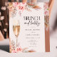 This boho "brunch and bubbly" bridal shower invitation features earthy neutral toned pampas grass, dried florals, soft blush pink roses and a sparkling champagne glass. Back side is detailed with more pampas & florals and a beautiful trendy terracotta background.