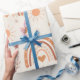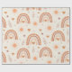Das ist ein niedliches bohisches Regenbogenmuster in Terrakotta, Orange, Pfirsich und Braun mit Sonne, Herz und Sternen. Es ist ein tolles Geschenkpapier für Babydusche-Partys