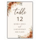 Terracotta Boho Rustic Fall Floral Wedge Tischnummer