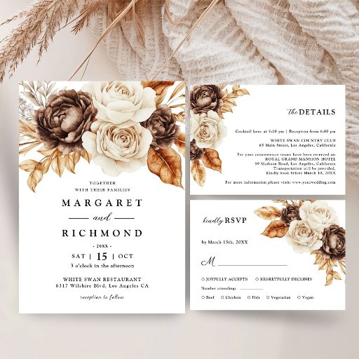 Terracotta Brown Floral Wedding rettet das Datum Einladung