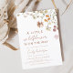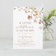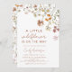 Feiern Sie die Ankunft eines neuen Freudenbündels mit einer schönen kleinen Wildblume auf dem Weg zum Thema Babydusche. Begleiten Sie uns für einen Nachmittag voller Liebe und Freude, während wir die künftigen Eltern ehren. Die Einladung zeichnet sich durch einen atemberaubend verbrannten Orange - Terrakotta-Hintergrund aus, der durch eine Vielzahl von lebhaften Wildblumen hervorgehoben wird.