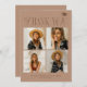 Eleganter Abschluss danke Ihnen Vorlage Karte zu senden, um diejenigen, die gratulierte Ihnen, besuchte Ihre Abschlussfeier, gab Ihnen Geschenke etc. Es steht "danke" in einem Typografentext, der mit Skript- und Serif-Schriftart vermischt ist. Der Hintergrund ist Terrakotta. Auf der Vorderseite der Karte befinden sich 4 Fotos.