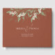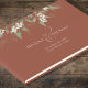 Genießen Sie die herzlichen Momente Ihres großen Tages in diesem eleganten Gästebuch, das Ihre Terrakotta-Empfang-Dekoration ergänzt. Dieses Buch mit zarten botanischen Blumen- und Grünakzenten, anmutigen Kalligraphie-Schriftzeichen und moderner Typografie bietet einen schönen Raum für jede geliebte Gästeschrift. Das schlichte und zeitlose Design verleiht Ihrer Hochzeit eine gemütliche, persönliche Touch und fügt sich nahtlos in Ihren romantischen, naturlich inspirierten Stil ein.